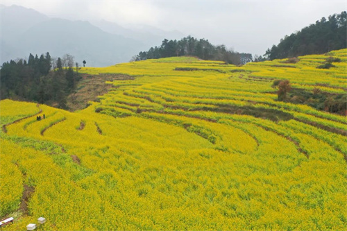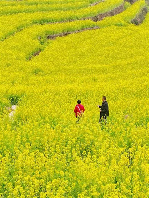 中都镇靠近中都河,河两岸是延绵不绝的群山环绕。这里的油菜花盛开在山野梯田之上,层层叠叠的梯田让油菜花无论从哪个角度看,都是一幅色彩丰富的田园画卷。