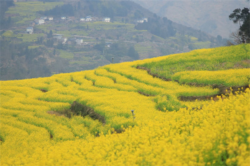 宜宾屏山县中都镇有川南地区最大,4万亩、几座山梯田油菜花海,当我们还在雾霾里瑟瑟过冬天时,宜宾屏山中都已经迎来了春天,花期从11月底初始,要持续到来年3月,实属全国最早的油菜花。每年1月底,中都山上的雪还没化完,山下的油菜花就已盛放成海,堪称川南自然景观一绝。