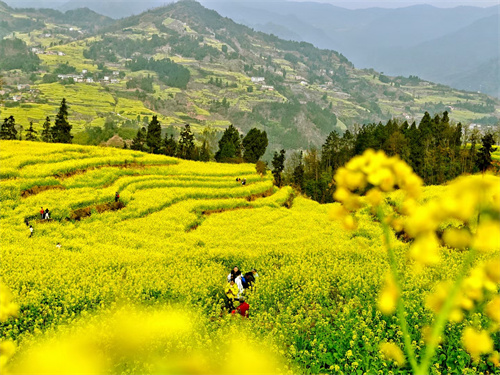 早上在指定地点集合出发,中午在沐川地道馆子饱餐一顿,之后集合前往【中都镇建民村】赏油菜花(可以坐中转车上山,单边10元,自理),这里的油菜花已经开始全面盛开,只管带上你的相机等一个晴天就能拍出满满的大片。走在乡间小路,闲庭杏步,静赏这个美丽田野。更能看到“万象观螺”的神奇景观——梯田绿海间,一簇簇金黄色的油菜花像繁星一样点缀其中,迎接春天的到来。